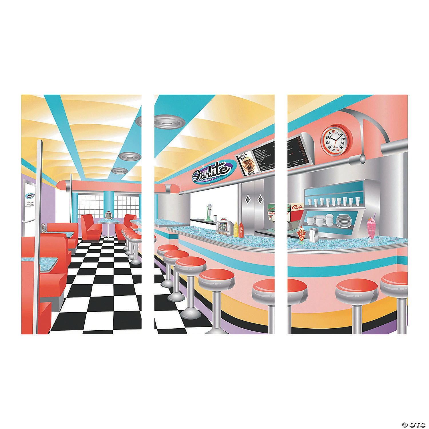 The perfect addition to a rockin‘ good time! Just as if you were at a 50s diner. Set up this backdrop banner for your DIY Photobooth or to set the stage for an awesome 50s party! Find more rockin’ 50s party supplies and decorations on our site! Plastic. (3 pcs. per set) Assembled, 9 ft. x 6 ft. © OTC