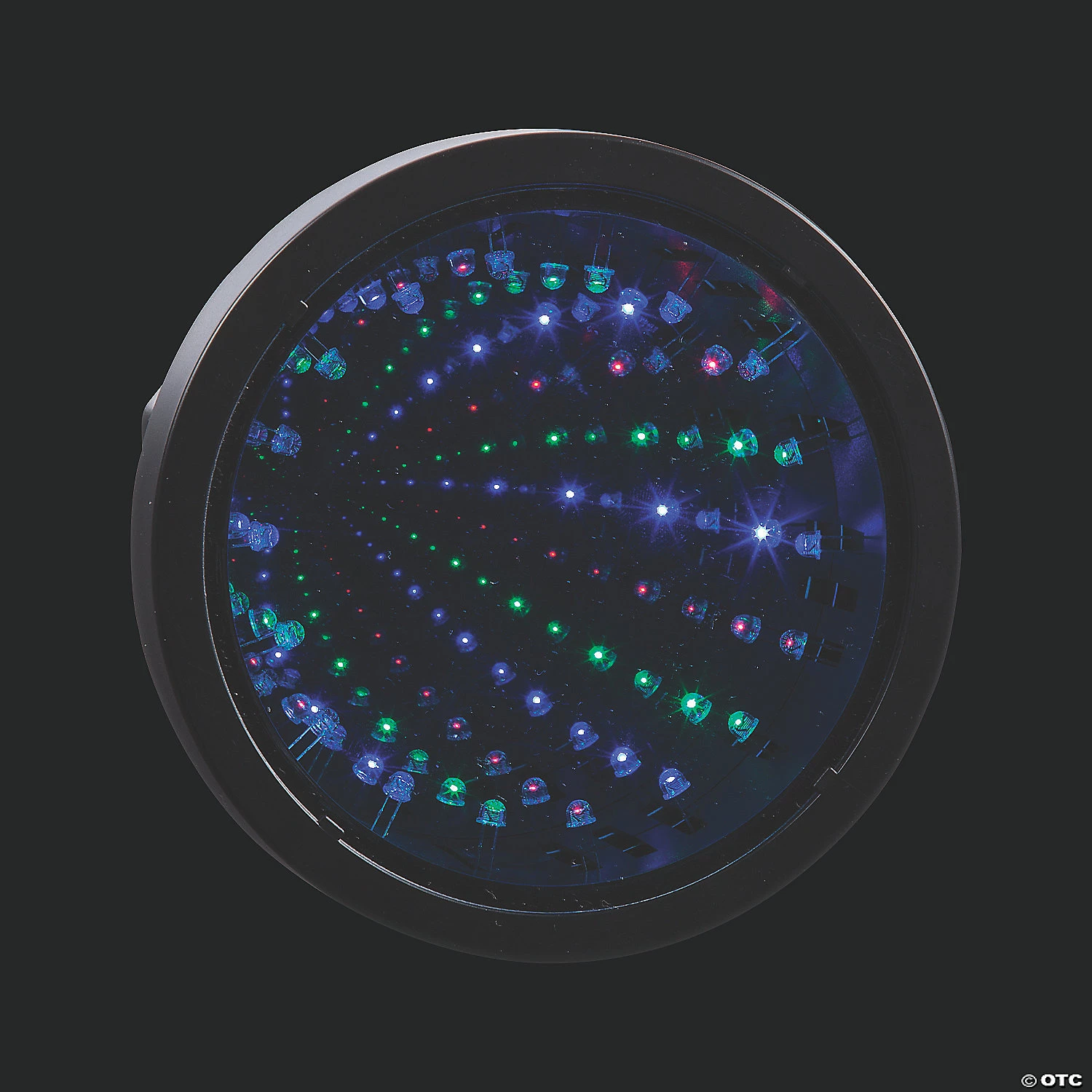 This hot electronic prize uses mirrors and LED lighting to create a tunnel illusion.• Material: Plastic.• Size: 6″ diam.• Requires 3 “AAA” batteries, not included.