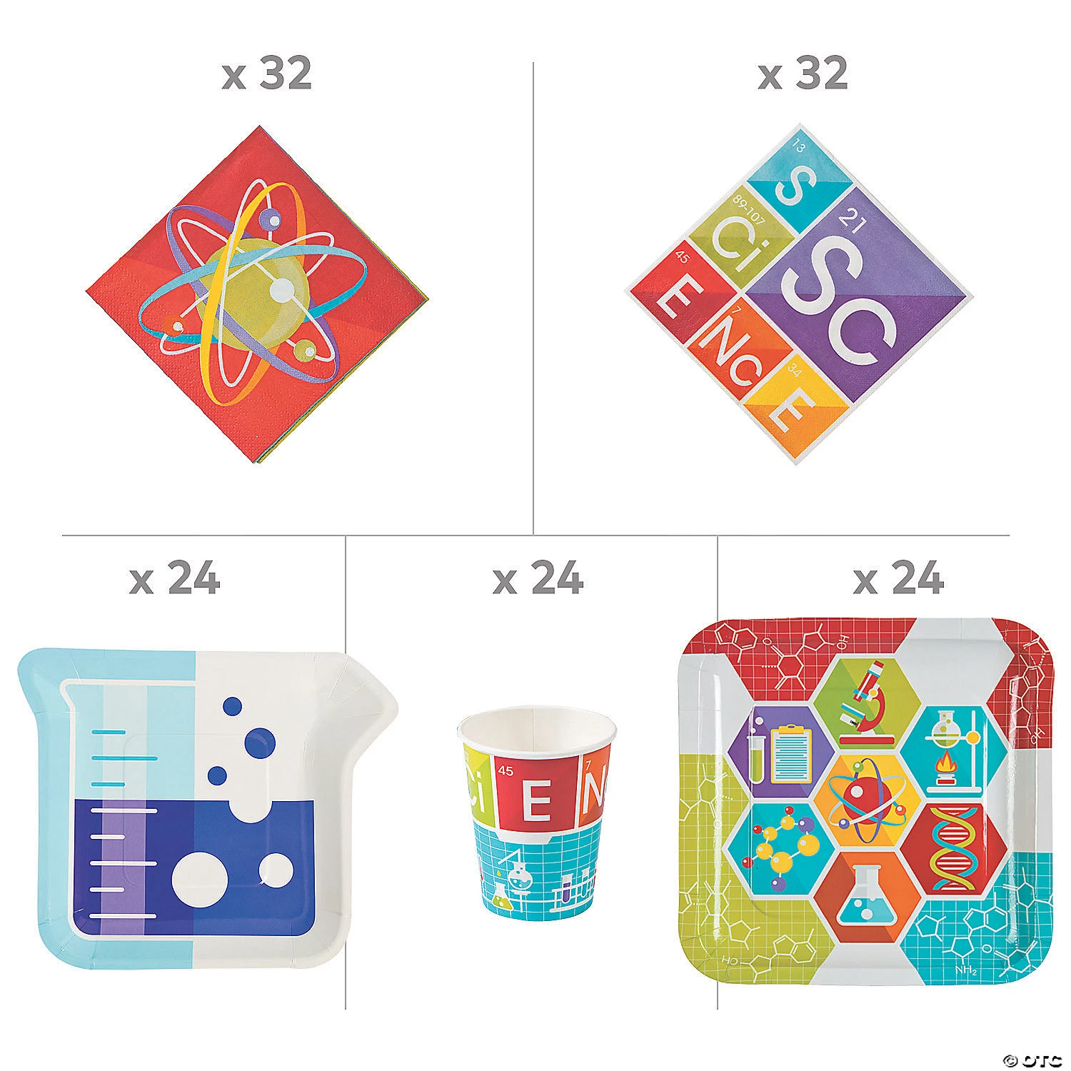Are you looking for science decorations for a kid’s party? Here’s everything you need for a science party for up to 24 kids! There’s no easier way to pull together a fun science party for up to 24 kids. Featuring decorations and tableware, this bundle of party supplies includes all the stuff you need to throw a great party! Scientific, empirical data suggests simple preparation makes for the best party! (199 pcs. per unit) Simple assembly required. Assortment may vary.Includes:• 24 Paper science party cups (3 3/4″ 9 oz.)• 32 Paper science party beverage napkins (5″)• 24 Paper science party dessert plates (7 3/4″)• 24 Paper science party dinner plates (9″)• 32 Paper science party luncheon napkins (6 1/2″)• 6 Paper science party lanterns (Includes two each of 8″, 12″, 16″)• 3 Plastic science party tablecloths (Disposable. 54″ x 108″)• 6 Cardstock science party wall cutouts (21″ x 18″)• 3 Plastic fork & spoon cutlery sets (48 pcs. 5″- 5 1/2″)