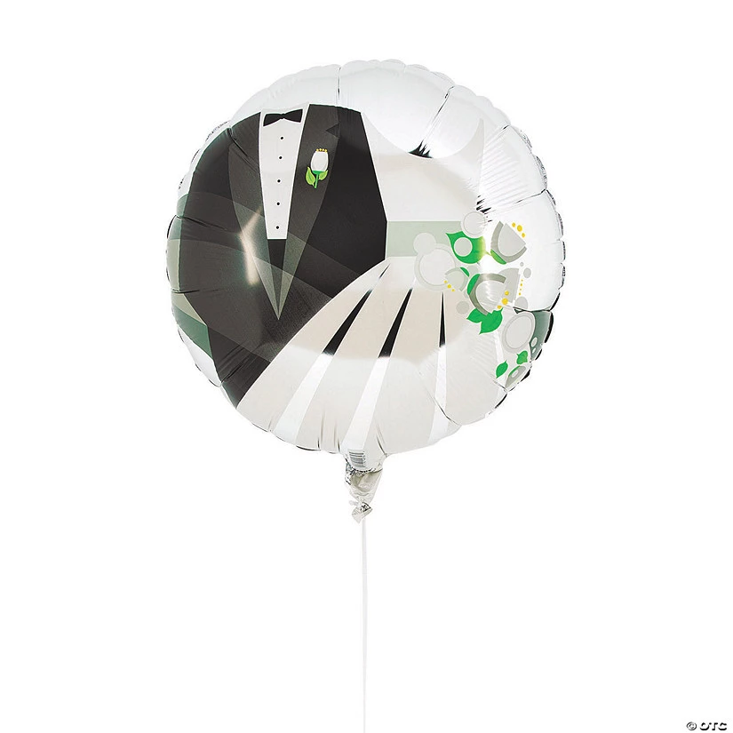 This wedding balloon has so many possible uses! Featuring an anonymous tuxedoed groom and wedding dress-clad bride, this balloon can be used as a wedding decoration, as bridal shower décor, as an engagement present and more. Fill it with helium and attach it to a bottle of wine to congratulate the happy couple! Mylar. 18″ diam.