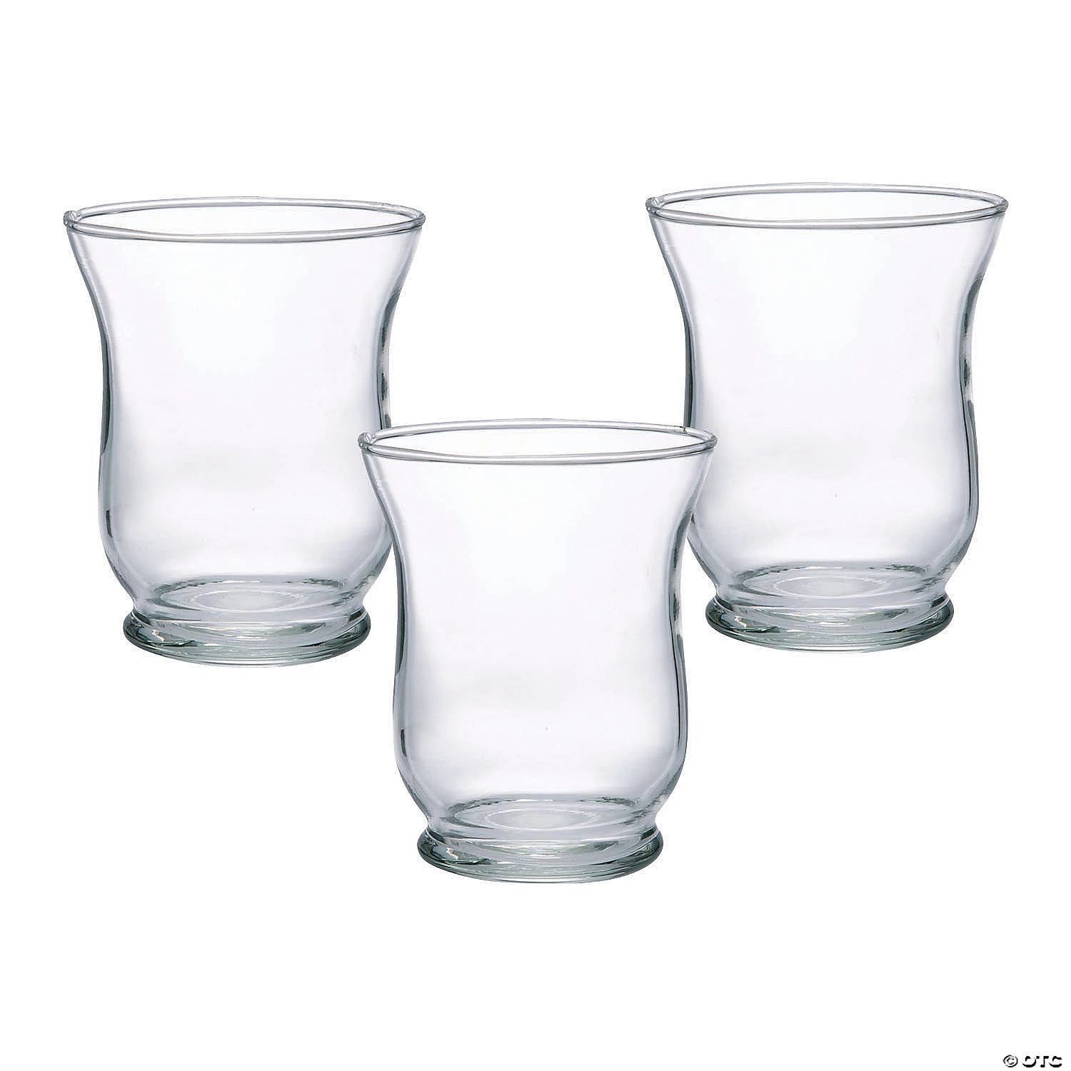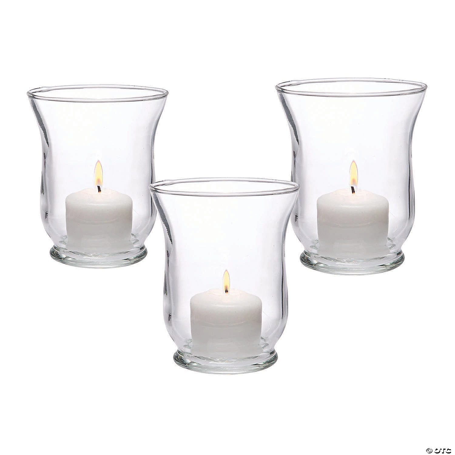 Light up your wedding reception or wedding ceremony with these Small Clear Hurricane Candle Holders! A perfect addition to wedding decorations, these candle holders are larger than votive holders but still small enough that they make great accent decorations. Because of the larger size, they can be used as bud vases, too. Use them in your centerpieces or to light up small tables near the dance floor. Glass. 3 3/4″ x 3″ diam.