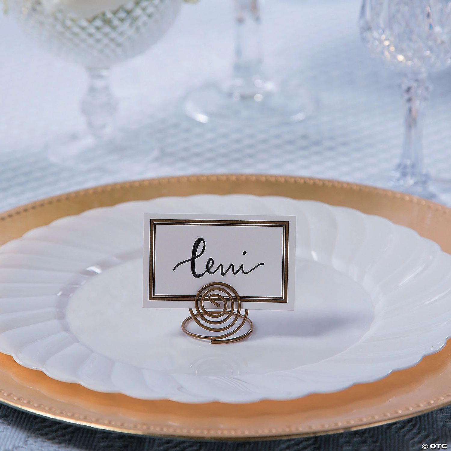 Elegant and stylish, these wedding place card holders are a perfect way to dress up your table settings and organize your wedding reception. In a striking silvertone or a gleaming goldtone, they easily complement your wedding decorations, no matter your color scheme. These table accessories are a great addition to wedding reception supplies and dinner party supplies. Metal. 1 1/4″