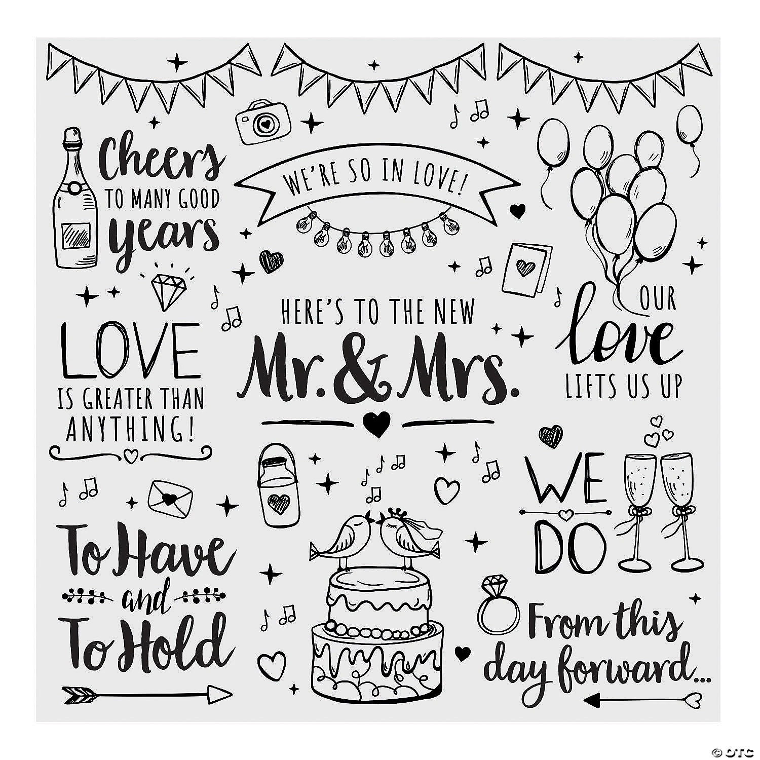 Strike a pose for the new Mr. and Mrs.! Perfect for DIY wedding photo booths, this backdrop features a modern design of hand-drawn-inspired images and sayings like “Our Love Lifts Us Up” and “Cheers to Many Good Years”. With this hung boldly on your big day, all your friends and family will be rushing to get a selfie with the bride and groom! Plastic. 72″ x 72″ © OTC