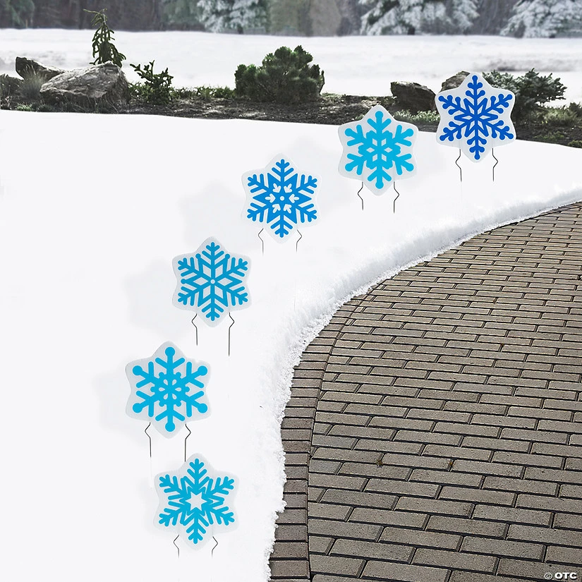 You don’t have to wait for Mother Nature to provide pretty snowflakes in your yard with these cute sidewalk signs! Each sign looks like a lovely snowflake and has metal stakes for easy placement in a yard or any grassy area. Great as outdoor holiday party decorations, these snowflakes can help lead guests to the entrance to the party. Corrugated plastic. (6 pcs. per unit) 8″ x 9″ Includes metal stakes. Single-sided. Simple assembly required.