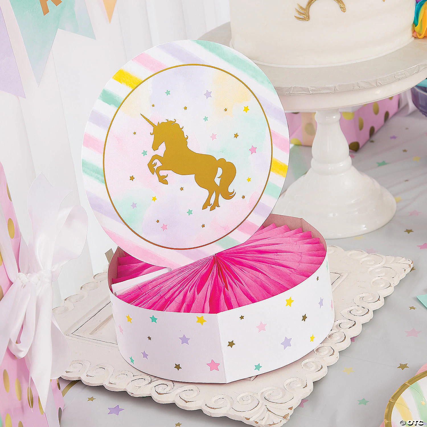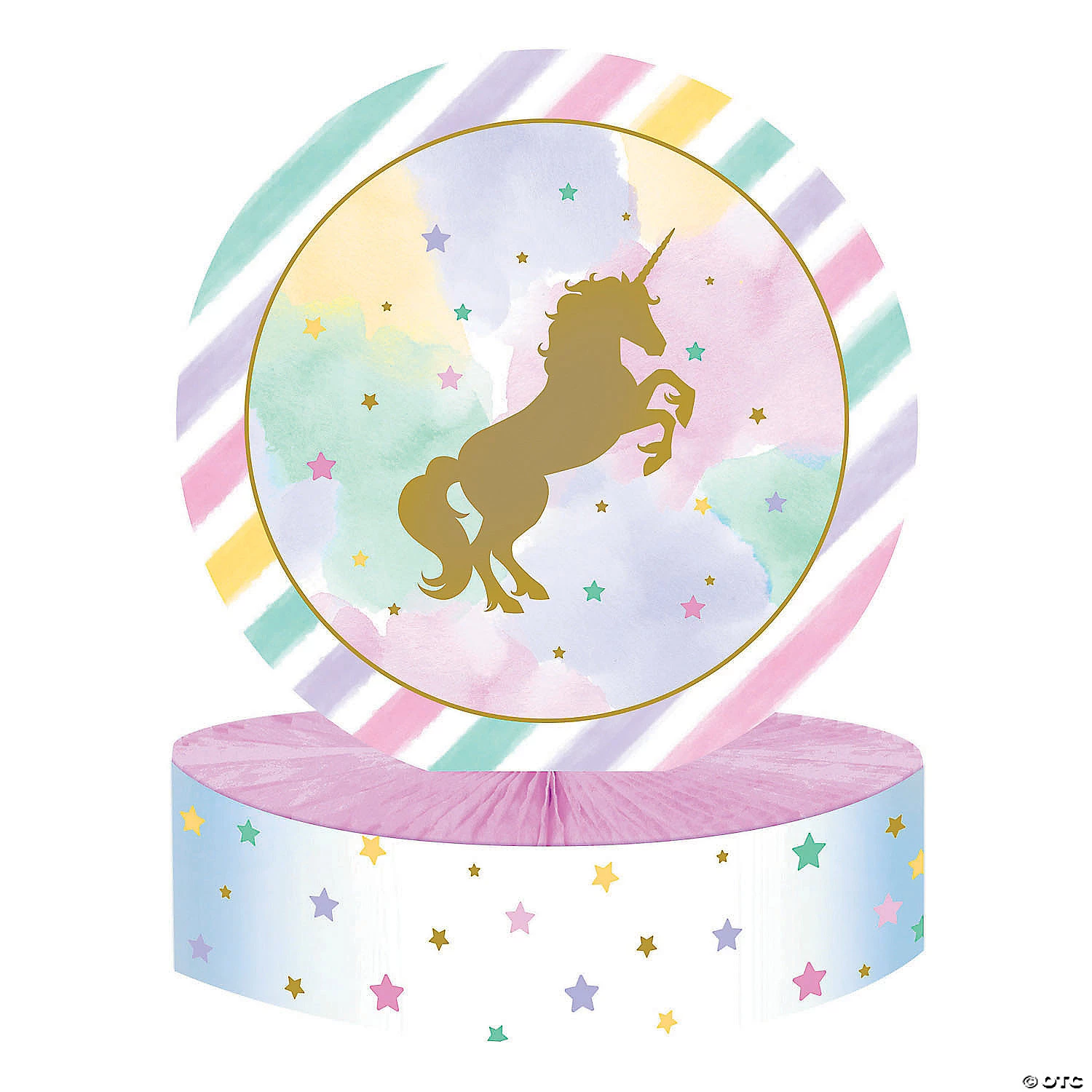 Pretty pastels, fun stars and a leaping unicorn – what’s better than that? Not much! This pretty Unicorn Sparkle centerpiece is an ideal party decoration for a unicorn birthday party. Put it on the head table, next to the guest of honor, or next to the birthday cake! Take the magic even further with more Unicorn Sparkle party supplies, found © OTC