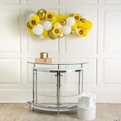 • TURN IT INTO A DIY CREATIVE ACTIVITY: This high-quality sunflower party balloon kit can be added to arts and crafts supplies! It’s perfect for a range of art projects and creative endeavors.• QUALITY DECORATIONS: If you’re planning a garden party, this gorgeous garland kit is a must. It features floral cutouts and quality latex balloons that can easily be mixed and matched with other balloon options for your ideal color scheme or event theme.• PERFECT FOR ANY EVENT: These sunflower balloon decorations aren’t just for birthday parties! You can add them to school spirit events, weddings, baby showers, garden parties, pool parties and so much more!• PARTY SUPERSTORE: We are your one-stop party shop! Come to Oriental Trading for all of your party supply needs, from party decorations to tableware to party favors and more.Product Description:Your event will bloom when you plant this eye-catching balloon garland over the door or on the wall of your celebration space. Sweet party supplies, these latex balloons and the coordinating sunflower cutouts make up a garland kit that has everything needed to create a lovely showcase piece. Ideal for a sunflower party theme, it is perfect for baby showers, bridal showers, birthday parties, tea parties, and any other bright, cheery celebration. Size: Assembled, 6 ft. 6″Quantity: 65 pcs. Material: Latex, PlasticIncludes:• 6 Yellow Latex Balloons (18″)• 8 Yellow Latex Balloons (11″)• 8 White Latex Balloons (11″)• 8 Metallic Gold Latex Balloons (11″)• 8 Yellow Latex Balloons (9″)• 8 White Latex Balloons (9″)• 8 Metallic Gold Latex Balloons (9″)• 8 Die-Cut Sunflowers (11″)• 1 Roll of Glue Dots® (Safe and non-toxic. 100 pcs. per unit 3/4″) • 1 Plastic Balloon decorating Strip (15 ft.)• 1 Plastic Hand Tool Assembly required.© OTC