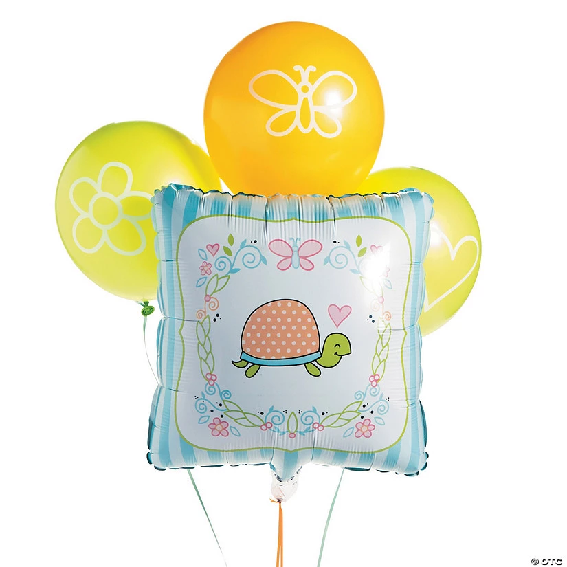 Inflate some party fun for your little lady’s celebration with this Turtle Balloon Assortment. The perfect addition to your party supplies, this assortment of balloons includes 1 mylar balloon, 1 orange latex balloon and 2 green latex balloons. Create your own eye-catching table centerpiece! (4 pcs. per set) 11″ – 18″ © OTC