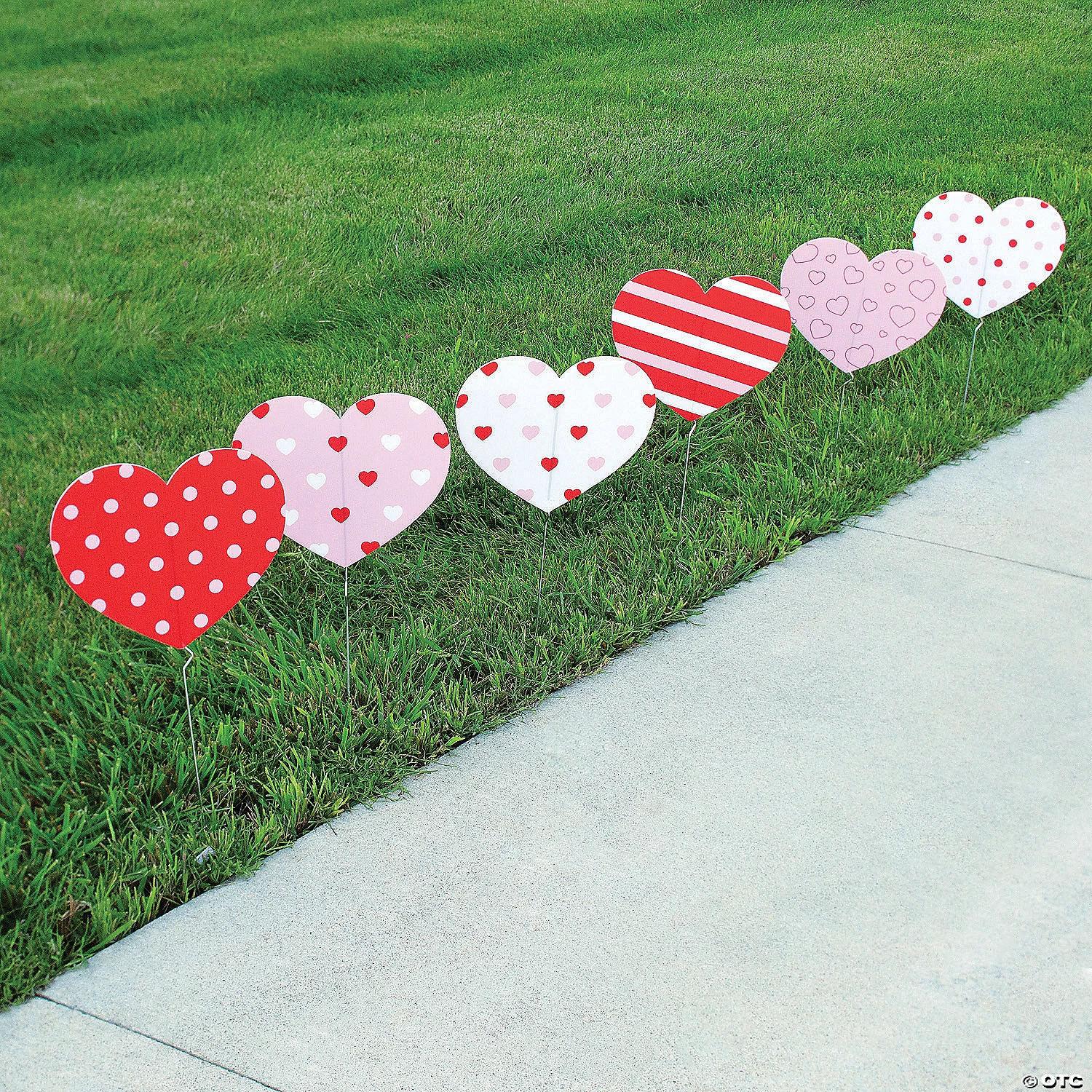 Mark the way to your Valentine’s Day party with these yard decorations! Featuring hearts, polka dots and stripes in lovely shades of red, white and pink, this outdoor décor is sure to make guests to your home, school or business feel the love. And you’re sure to love the other Valentine’s Day party decorations, tableware and games on this site to complete your party supplies! Includes metal stakes. Corrugated plastic. (6 pcs. per unit) 10 1/2″ x 8 3/4″ Simple assembly required. © OTC