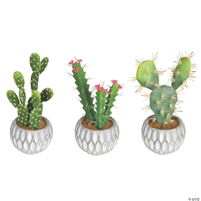 Vickerman 10″ Green Cactus in Cement Pot, Assorted Set of 3. Add rich color and a touch of artistry to any décor with this Beautiful Set of Cactus Plants Fixed in Decorative Cement Pots. Comes in 3 Assorted Styles.The Pots Measure 3″H x 4″W x 4″D
