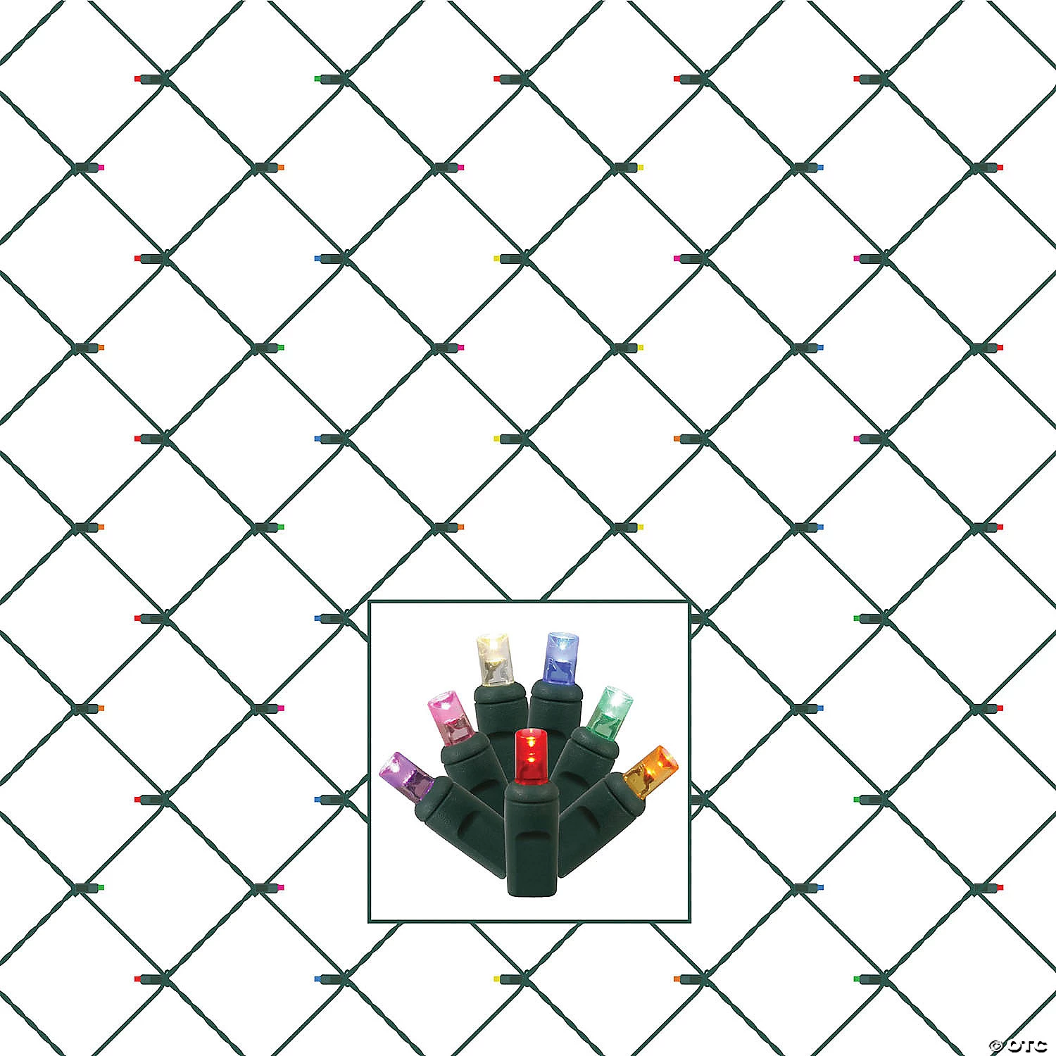 Vickerman 120 Multi-color Wide Angle LED Christmas Net Light Set. Brighten your Holidays with this Net light set featuring 120 Multi-color Wide Angle LED Single Mold lights on Green wire, a 12″ lead wire, and an 4″ end wire. This Net light set measures 4′.