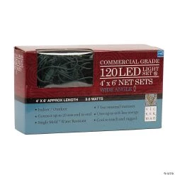 Vickerman 120 Red and Green Wide Angle LED Christmas Net Light Set. Brighten your Holidays with this Net light set featuring 120 Red and Green Wide Angle LED Single Mold lights on Green wire, a 12″ lead wire, and an 4″ end wire.