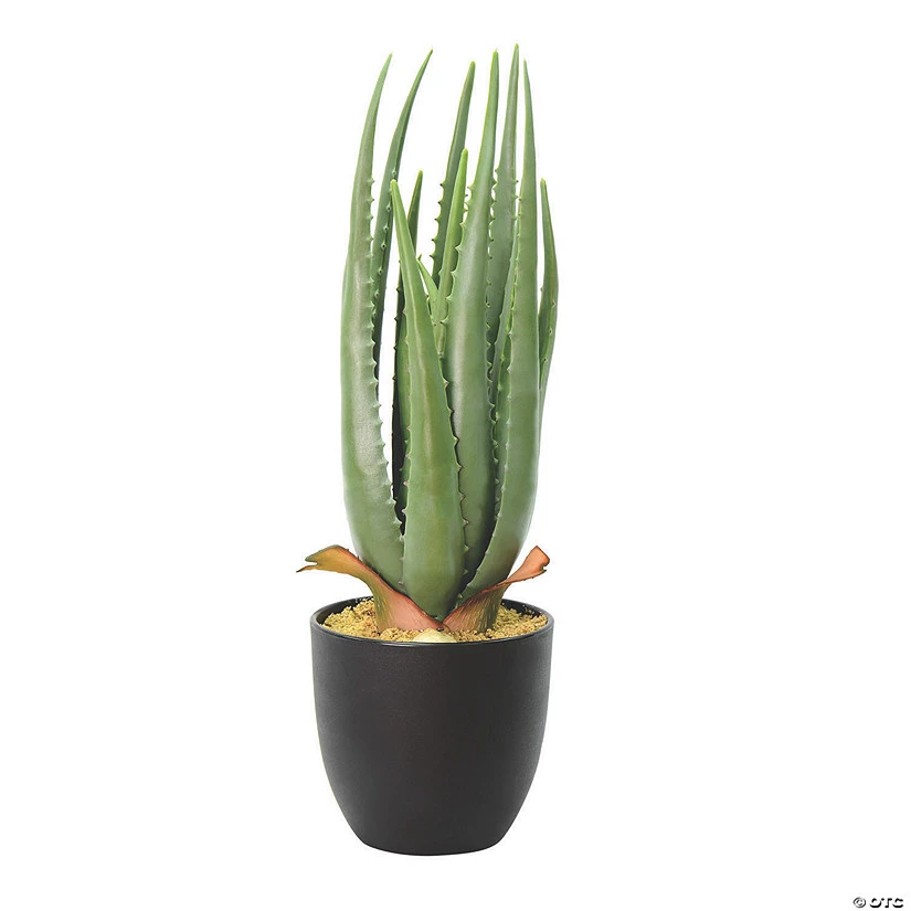 Vickerman 17.5″ Artificial Green Potted Aloe Vera. This green aloe vera plant comes in a plain black pot that can blend in with any style or placed into a decorative container of your choice. Pot is 6″H x 5″W
