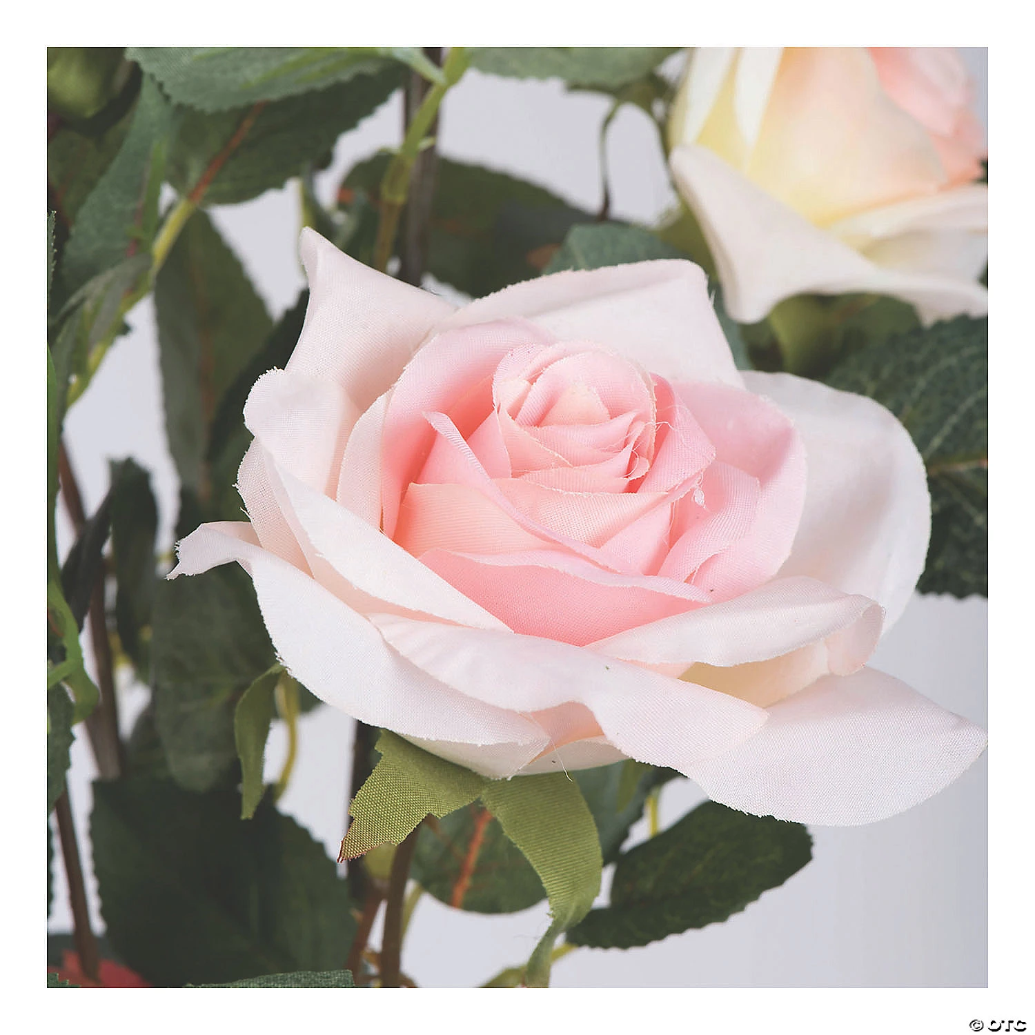 Vickerman 21″ Artificial Pink Rose Plant in Pot. It comes in a 5″ black planter’s pot that can stand on its own or nest into the decorative pot of your choice. Brighten up your space with this rose plant that will look fresh season after season. The pot is 4.5″ high by 5″ wide.Special Shipping Information: This item ships separately from other items in your order. This item cannot ship to a P.O. Box. This item may be subject to additional processing days. ITEM IS NOT ELIGIBLE FOR EXPEDITED SHIPPING