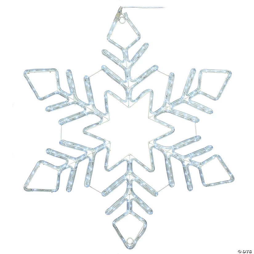 48″ Pure White LED Star Twinkle Ropelight Snowflake, 1:8 Twinkle Ratio, 10MM Ropelight with 6′ Lead Plug and 1.5″ Bulb Spacing, Powder Coated White Metal Frame. Special Shipping Information: This item ships separately from other items in your order. This item cannot ship to a P.O. Box. This item may be subject to additional processing days. ITEM IS NOT ELIGIBLE FOR EXPEDITED SHIPPING