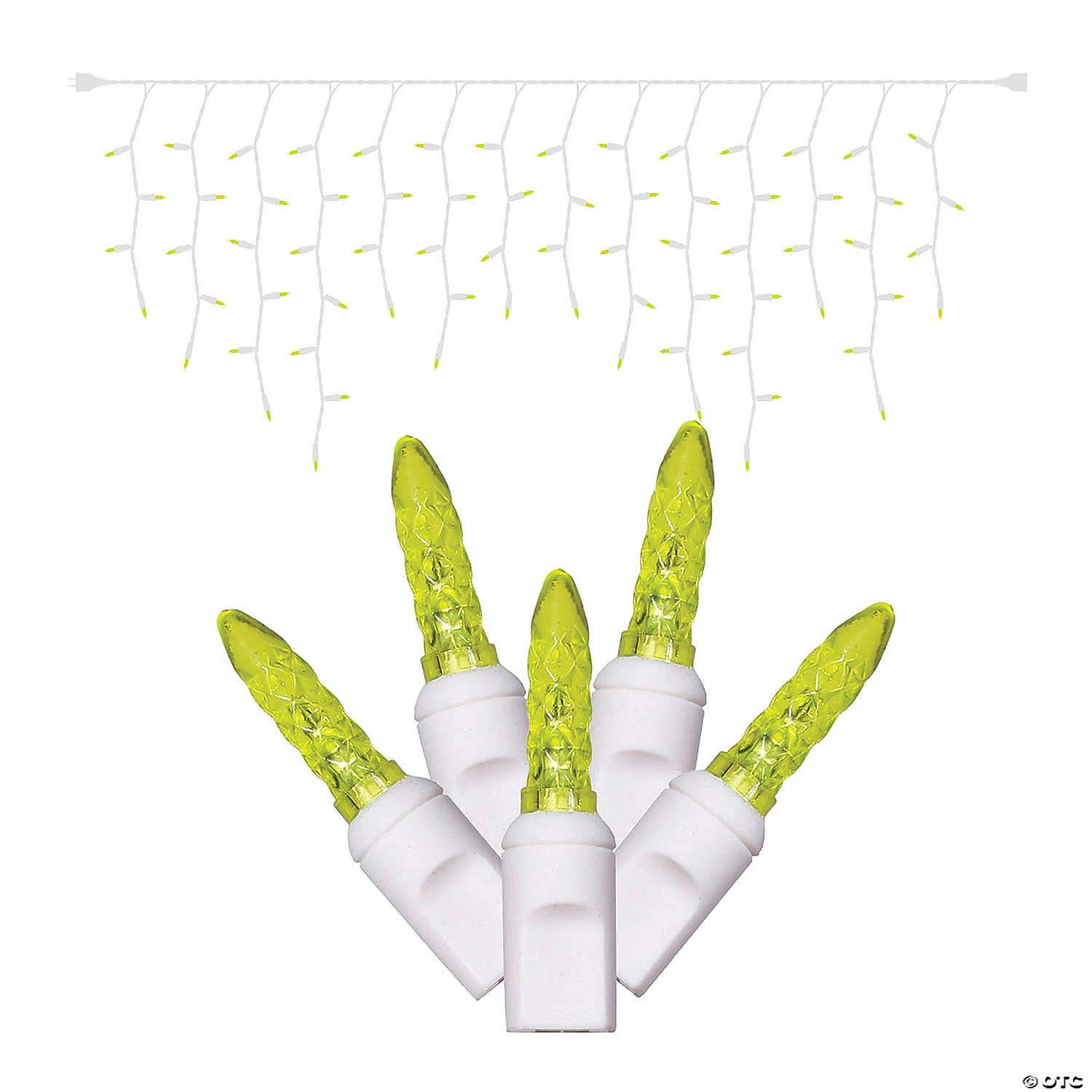Vickerman 9′ LED Lime Single Mold M5 Icicle Christmas light set. Add some sparkle to your Holidays with this Icicle light set, featuring 70 Lime faceted M5 LED lights on white wire, with 8″ drop spacing and 3.5″ bulb spacing. This light set is end connecting. Special Shipping Information: This item ships separately from other items in your order. This item cannot ship to a P.O. Box. This item may be subject to additional processing days. ITEM IS NOT ELIGIBLE FOR EXPEDITED SHIPPING