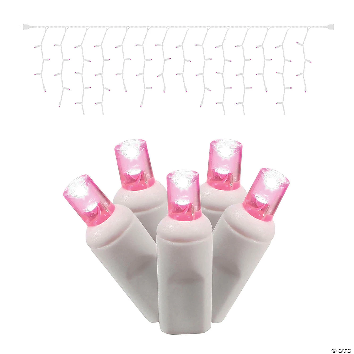 Vickerman 9′ LED Pink Single Mold Wide Angle Icicle Christmas light set. Add some sparkle to your Holidays with this Icicle light set, featuring 70 Pink Wide Angle LED lights on white wire with 8″ drop spacing and 3.5″ bulb spacing. This light set is end connecting.