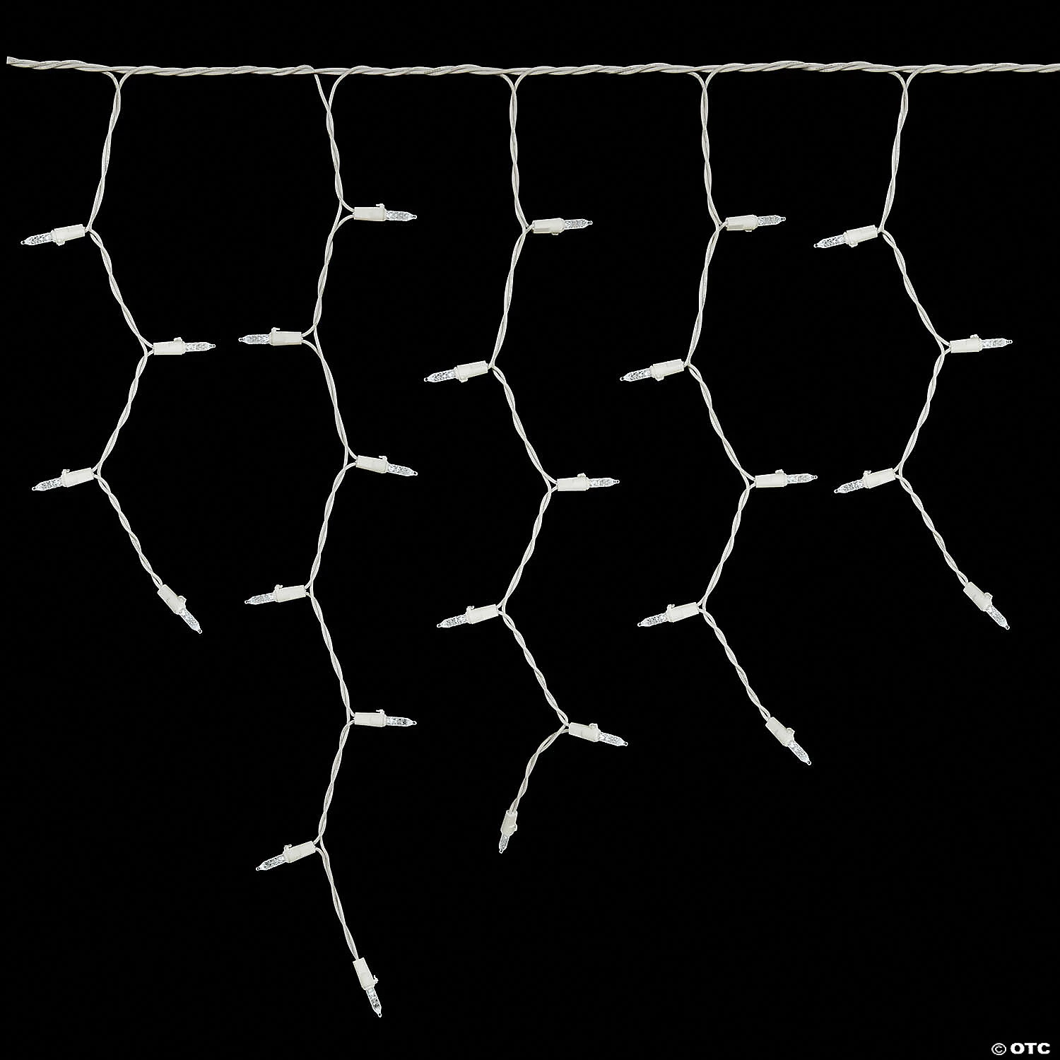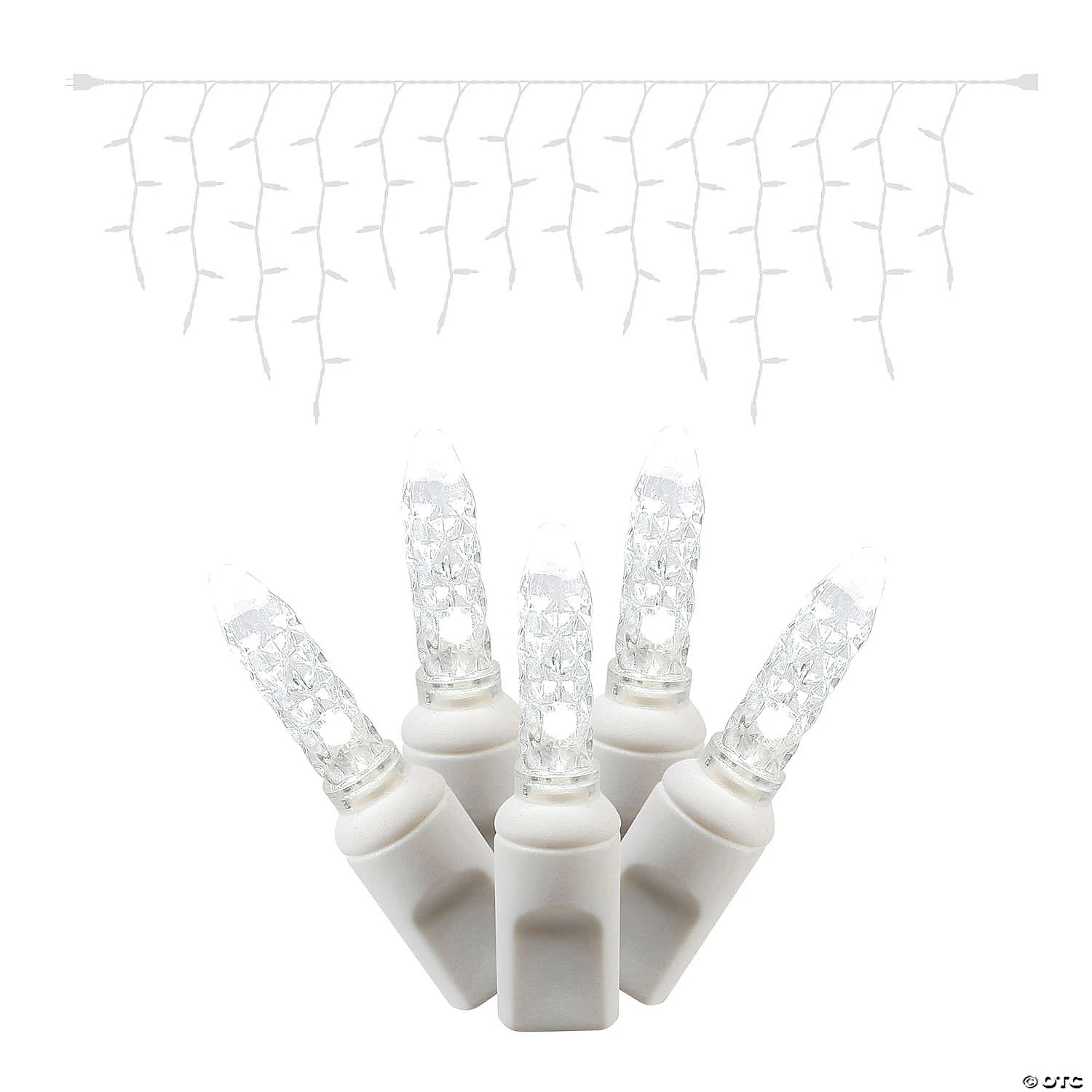 Vickerman 9′ LED Pure White Single Mold M5 Icicle Christmas Twinkle light set. Add some sparkle to your Holidays with this Icicle light set, featuring 70 Pure White faceted M5 LED Twinkle lights on white wire, with 8″ drop spacing and 3.5″ bulb spacing.