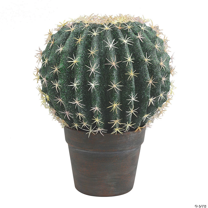 Vickerman 9.5″ Artificial Green Barrell Cactus in Gray and Light Red Pot. Brighten up your space with this maintenance free green cactus. The pot is 5.5″H x 4.5″W. 80%Plastic, 20%Wire