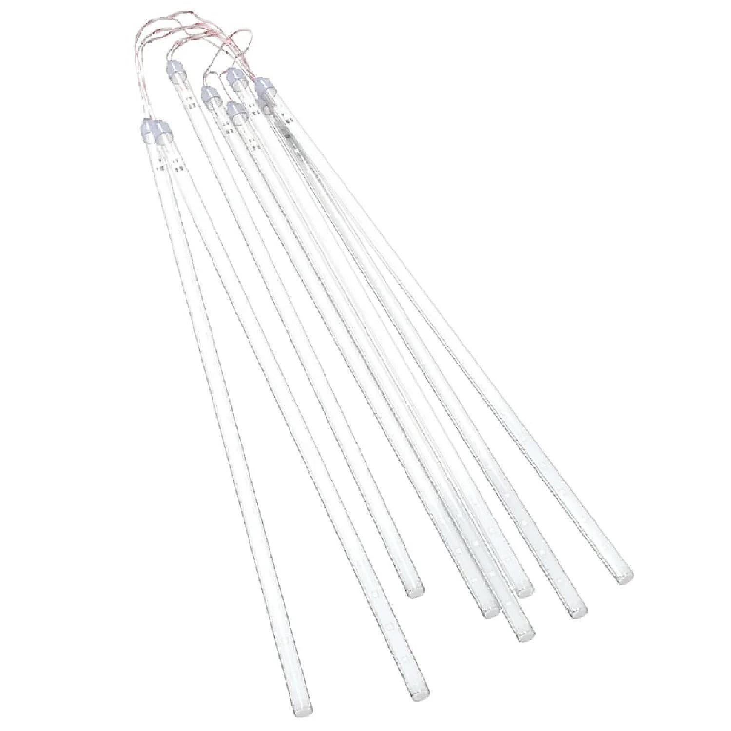 These meteor lights are perfect for indoor and outdoor parties, Christmas, weddings and any other event where you want to add some sparkle. It is also an excellent decoration of trees along streets. The meteor rain lights are made of durable plastic material, which is water-resistant and durable. Each light tube has 36 energy-saving and low-consumption SMD LEDs, providing omnidirectional illumination. The twinkling lights of every tube turn on and out one by one in sequence and quickly, just like a meteor shower or falling snow in the night sky. Note: The included USB is not water-resistant. Do not expose this part to moisture or water. However, thanks to the 2 m cable, the item can be used outdoors as the cable and product are water-resistant. Light color: Blue Material: Plastic Tube length (each): 19.7″ Extension cable length: 78.7″ Voltage: 5 V Power: 5 W Rainfall motive Water-resistant Includes 288 energy-saving SMD LEDs Suitable for indoor and outdoor use Assembly required: Yes Note: This has a USB connector and the 5V USB adapter is not included Delivery contains: 8 x Light tube