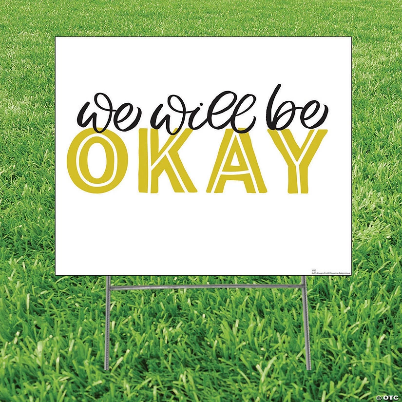 In times like these, it’s important to remember a sense of community. Add this yard sign to your front lawn to share the message of solidarity: We Will Be Okay. We are all in this together, and it’s so helpful to remember that. A great sign for a car parade, or to share the message with neighbors. Corrugated plastic. Single-sided. 8 1/2″ x 23″ Includes metal stakes. Simple assembly required.