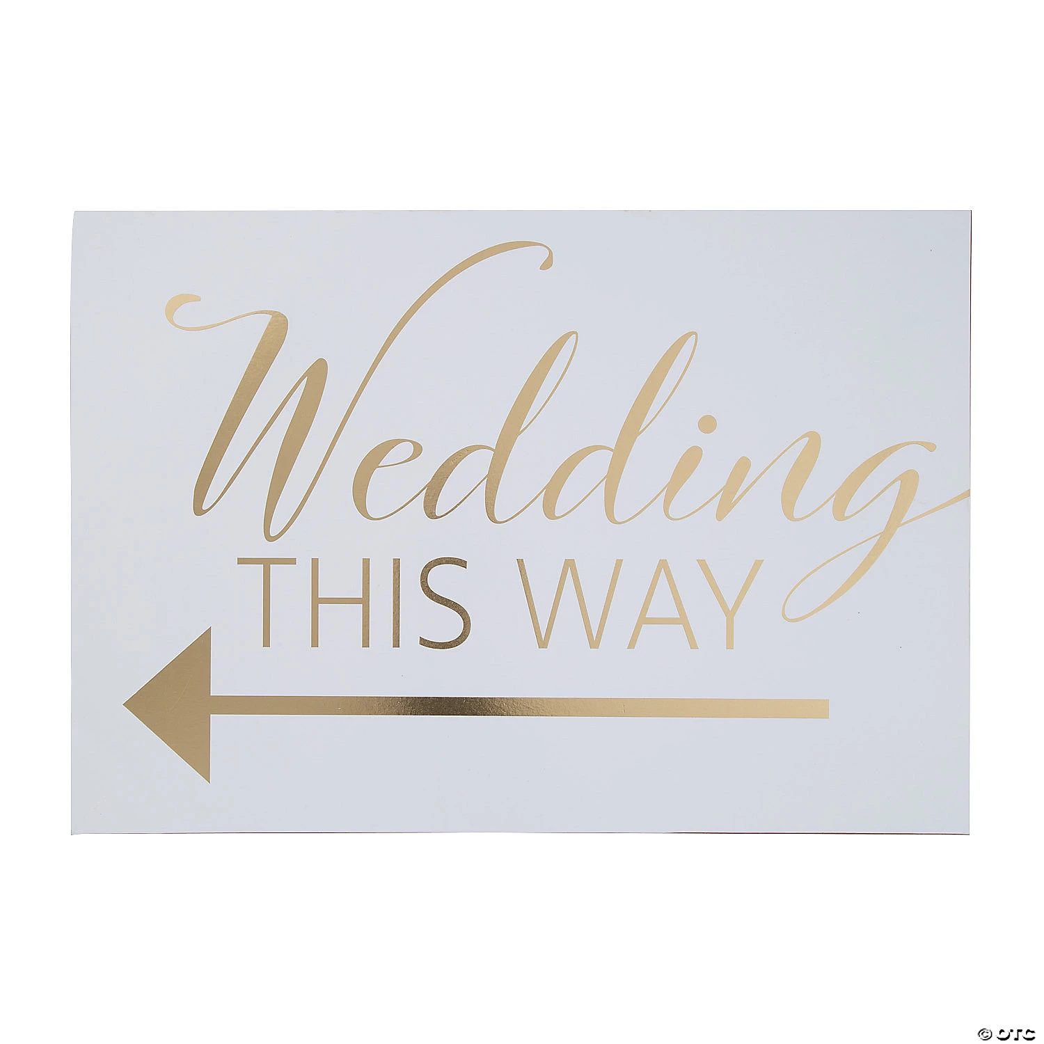 Help wedding guests find their way to the ceremony with this eye-catching sign. This attractive directional sign points guests in the right direction with an arrow and “Wedding this way” text. Great for venues with multiple events going on at once, this sign helps wedding guests avoid wandering into the wrong event room. Double-sided. Wood. 23″ x 16″ © OTC