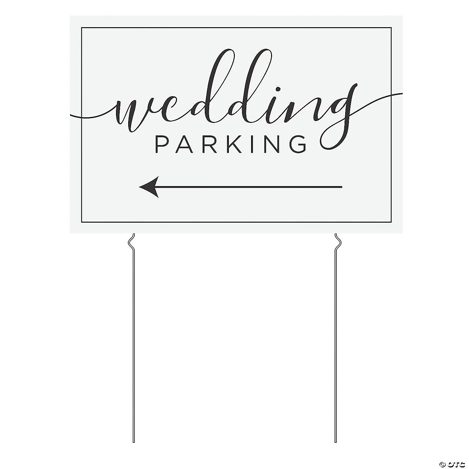 Show wedding guests where to park with this elegant parking sign. Great for weddings that take place in unconventional venues where parking might not be obvious, this yard sign takes the guess work out for friends and family coming to share in your big day. That way, they can focus more on you and your spouse-to-be! Includes metal stakes. Corrugated plastic. 26″ x 17″ Simple assembly required. © OTC