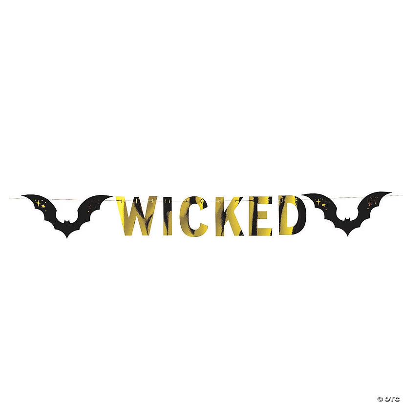 Don’t be a basic witch! Instead conjure up a celebration that excites, delights and frights. Spellbinding when added to Halloween party décor, this garland spells out “Wicked” in shimmering gold letters and is flocked by two black bats. Hang behind the buffet or as part of a DIY photo booth backdrop to transform your celebration—no hocus pocus required, promise! Paper. 7 ft. © OTC
