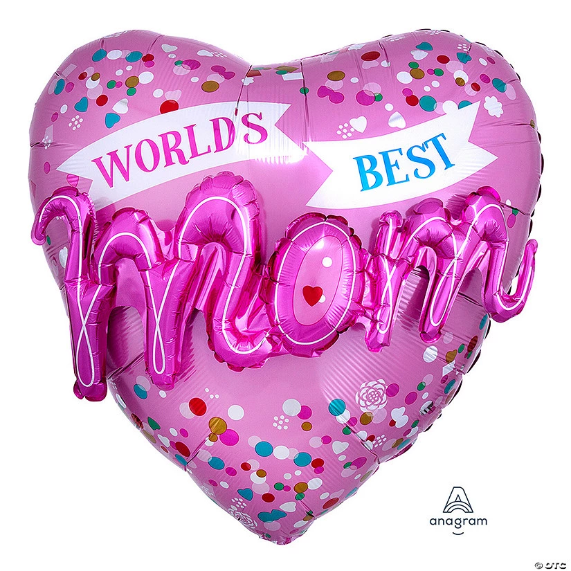 Show Mom how much you love her with this giant balloon! This heart-shaped balloon features a fun pink design with 3D letters and is pre-printed with “World’s Best Mom”. Surprise and delight her by pairing it with a gift and homemade card. You can also add it to a balloon bouquet and use as a centerpiece decoration for the food and cake table at a Mother’s Day event. 36″