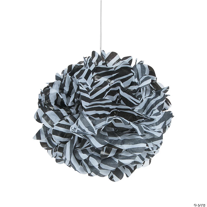 Give any party texture and eye-catching excitement by adding these Zebra Print Tissue Pom-Poms to your party decorations. These hanging decorations make a fun addition to a number of fabulous occasions, from bachelorette to safari parties, 1st birthday celebrations and more! Includes satin cord hanger and instructions. Paper. (3 pcs. per set) 15″ Simple assembly required. © OTC